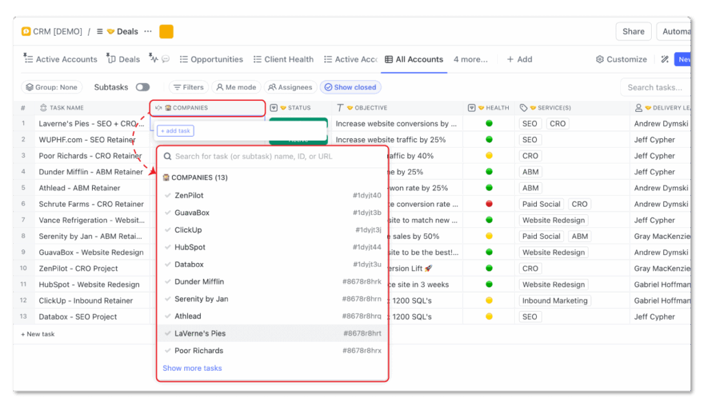 Let’s explore how some of the most popular CRM systems integrate with ClickUp. Note that integration capabilities and features can change, so always refer to the CRM provider’s and ClickUp’s documentation for the most up-to-date information.