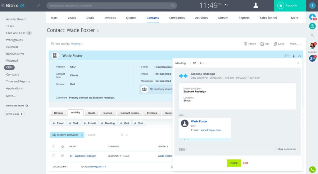 Bitrix24 is an all-in-one business platform that includes a free CRM. It’s a great option if you’re looking for a solution that also offers project management, collaboration tools, and more. Bitrix24’s free plan provides: